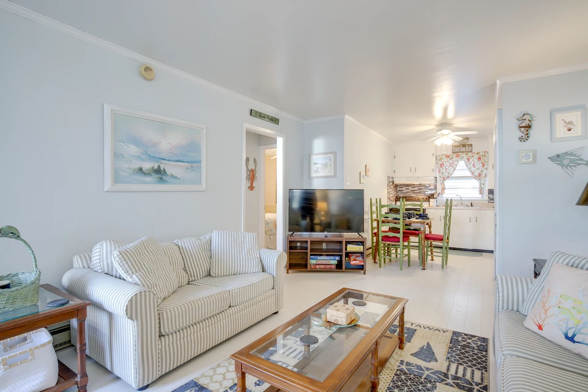 Welcome to this charming 2-bedroom, 1-bathroom condo in Ocean City, MD! Located on 8th Street in the English Condominiums, it offers a prime downtown location. Close to the bay, boardwalk, Air Show, Car Show, and 4th of July fireworks. Linen included. Sleeps 6. Family-friendly.